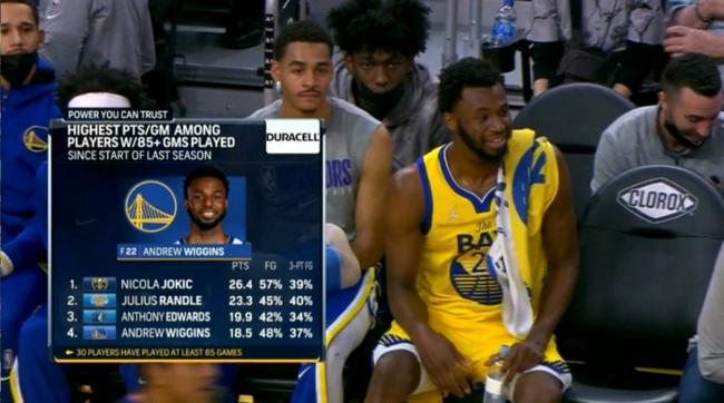 北京时间11月22日,在今天勇士主场对阵猛龙的比赛中,维金斯首节就进入状态,他单节6中5得到14分3个篮板。转播方也打出数据:从上赛季到今天至少出战了85场比赛的球员中,维金斯的场均得分高居第四位。