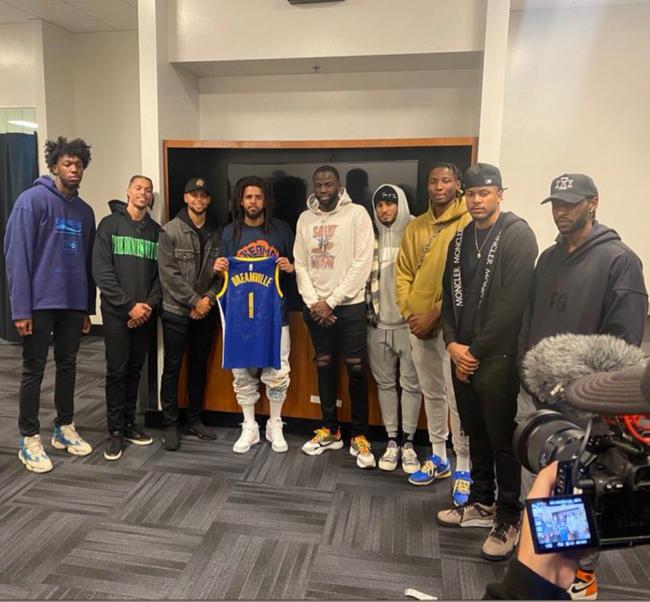 北京时间11月22日,勇士本季战绩出色,人气也是居高不下。近日,美媒晒出知名说唱歌手J。 Cole和勇士球员的合影照,他还获赠了一件勇士球衣。