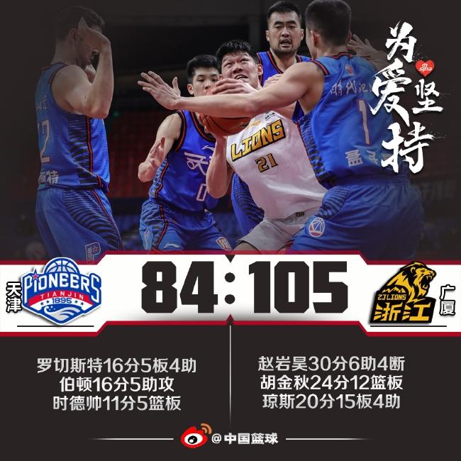 胡金秋24+12赵岩昊轰下30分 广厦轻取天津