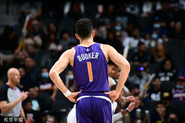 面对马刺,太阳没遇到太多麻烦。布克全场33投18中,三分球13投5中,得了48分、6个篮板和3次助攻。