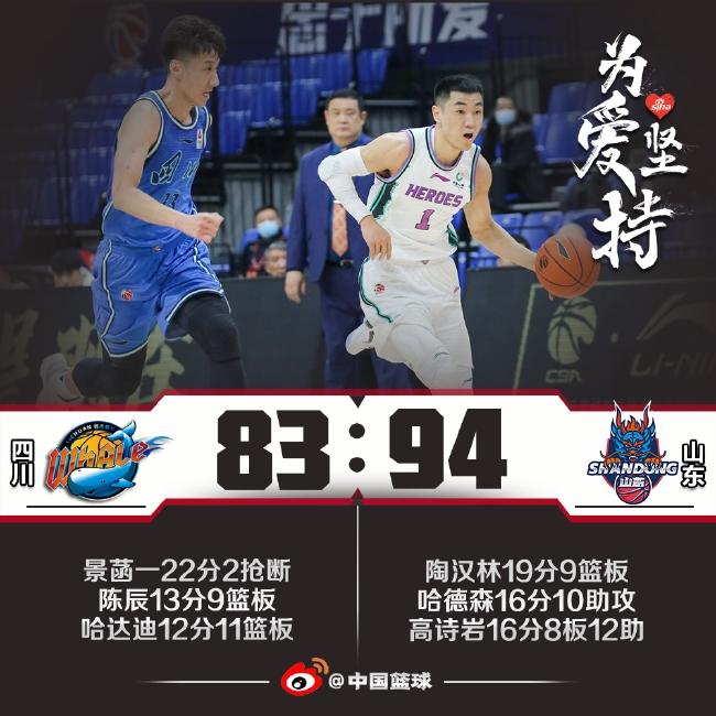 2022月1月9日, 2021-2022赛季第二阶段第20轮展开较量,山东94-83战胜四川,山东斩获3连胜,四川两连败。