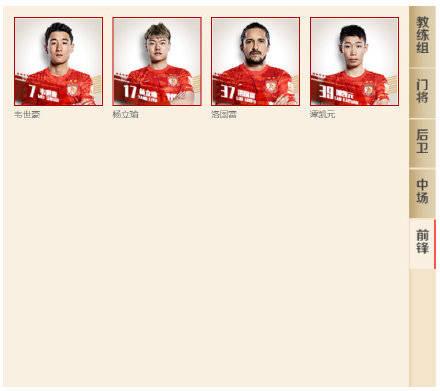 前锋:韦世豪、杨立瑜、洛国富、谭凯元