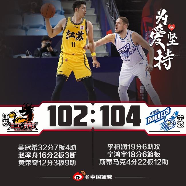 江苏5人得分上双,吴冠希32分7板4助2帽,赵率舟16分3断,吴羽佳11分2板3断,黄荣奇12分3板9助,陶彦儒11分2板。宁波5人得分上双,李柏润19分6助,韩德龙17分4助2断,王向彬16分4板,宁鸿宇18分6板,赵俊峰13分2板4助,外援斯蒂马克4分22篮板12助攻。
