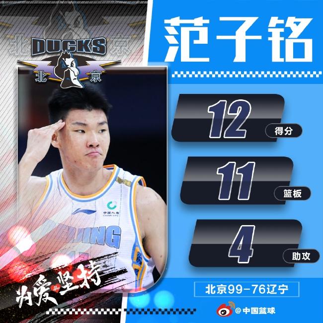 值得一提的是,这是范子铭本赛季第五次拿到两双,在这五场比赛中,北京队战绩为4胜1负。